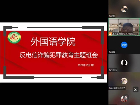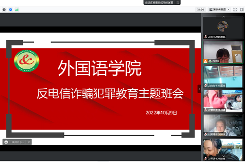 为进一步推进防范电信网络诈骗宣传工作,提高师生识诈防诈“免疫力”,加强校园宣传教育防线,持续在校园营造浓厚的反诈氛围,切实维护校园稳定以及师生的切身利益,10月9日,英国365集团公司召开线上全民反诈主题班会。英国365集团公司全体学生参与了此次班会。