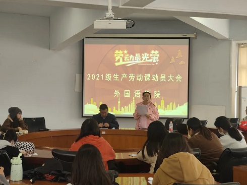 为促进学生德智体美劳全面发展,调动同学们对劳动的积极性,帮助同学们树立正确的价值观、劳动观,11月3日,英国365集团公司于1号教学楼201教室召开生产劳动课动员大会,英国365集团公司党总支书记曲福华出席会议,学生科科长苏成荣、辅导员老师张瑾主持会议,2021级法语班全体同学参加此次会议。