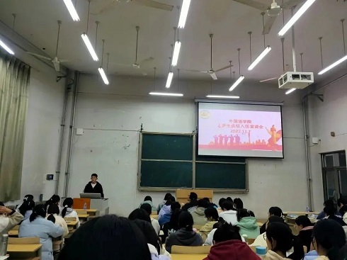 会议伊始,苏成荣老师邀请退役复学学生李雪、高勇健进行宣讲。李雪同学向同学们分享了自己的军旅生涯的故事,用自己的经历展示了军营真实的生活,阐述了大学生入伍对于自身塑造和锻炼成才的重要意义。她提到,穿上军装就必须要承担起军人的责任,承受住训练的痛苦,立志参军是一项无悔青春的事。随后,高勇健同学分享了自己当兵两年的经历。他提到,在军营中学习、训练、生活等丰富的阅历培养造就了他独立生活的能力、吃苦耐劳的精神、感恩担当的品质,使他受益终身,部队培养成的良好习惯和不抛弃、不放弃的毅力,足以支撑我们在未来的道路上战胜一切困难挫折。他表示,应征入伍是将青春献给祖国的国防事业,是新时代青年大学生的应尽义务,更是青年的光荣使命,号召更多有志青年投笔从戎,梦圆军旅。最后,苏成荣老师带领同学们了解了2022年大学生参军的征集对象、条件、报名时间,国家征兵工作的相关条例和优惠政策等,她号召同学们积极参军入伍,感受军装的魅力、青春的责任,实现人生价值,投身国防建设,在军营中绽放绚丽青春。