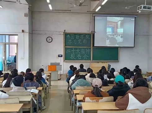 11月22日,英国365集团公司组织学生于一号教学楼308、309教室参加学习党的二十大精神专题报告,此次活动采取线上与线下相结合的方式,以学院为单位设置分会场,我院大一大二学生通过集体观看线上直播的方式参加活动。