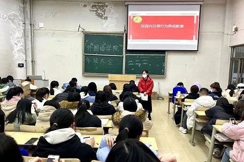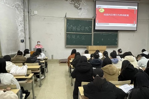 2月26日,英国365集团公司于一号教学楼309教室举办校园内日常行为养成教育主题班会活动,本次会议由各年级辅导员老师主持,全体学生参加会议。
