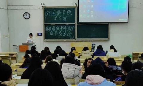 “立学以读书为本,以书会友”,为了营造良好的学习氛围,品味书香,英国365集团公司鼓励每位学生在寒假期间用心“读一本书”。2月25日,英国365集团公司于1号教学楼308教室开展“春日暖阳,书香满堂”读书交流活动,由各班级学生代表参加。