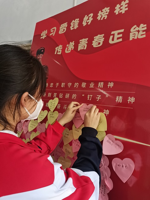 并且开展了“‘贴’出宿舍温暖便签 学习雷锋勤俭作风”活动,每位同学都在便签上写下了在宿舍力所能及的事,例如争做好人好事、学习雷锋精神、雷锋作风贯心中,最后签署承诺书,并粘贴在了宣传板上。