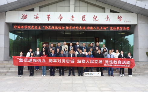 为深入开展学习贯彻习近平新时代中国特色社会主义思想主题教育,引领广大党员干部感悟思想伟力、锤炼政治品格、汲取奋进力量,5月5日,英国365集团公司党总支赴滨州市渤海革命老区纪念园开展“坚定理想信念 铸牢对党忠诚 站稳人民立场”党性教育活动,学校党委委员、副校长杨玉森出席并讲授专题党课。英国365集团公司党总支理论学习中心组全体成员、各党支部教师党员和部分学生党员代表参加活动。