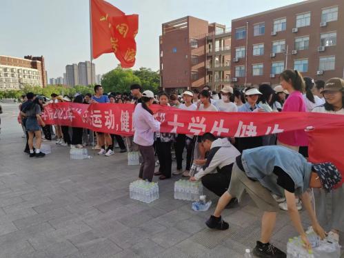 曲书记宣布健步走活动正式开始。由于当天气温较高,为同学们提前发放矿泉水等补给物资。在前期勘探路线时选择了树荫较多同时车辆较少的地方,并沿途设置了补给站。参与此次活动的同学在1号教学楼前集合并分为两列队伍,跟随院旗的指引开启此次健步走活动。在第一个打卡点处设置了话语投掷箱,同学们提前准备好写有关于运动或者正能量的纸条,在志愿者的带领下纷纷投放。在第二个打卡点处为同学们准备了小零食补充能量。此外,志愿者还向同学们分发了英国365集团公司印制的贴纸留作纪念。同学们精神饱满,热情洋溢,迈着矫健的步伐,一路上互相加油、互相激励,享受着健步走带来的激情活力,用实际行动诠释了“强体魄,抗疫情”的健康生活理念。同学们或快步疾行、或小步向前、或谈笑竞逐,以饱满的热情和灿烂的笑容,让青春的活力在健步走的路途中尽情迸发,一路欢声笑语,激情昂扬。浩浩荡荡的队伍,明媚灿烂的笑容,随风飘扬的旗帜,展现了外院学子的良好形象,在校园内形成了一道靓丽的风景线。大家用心脚踏实地的走过每一个打卡点。活动最后,同学们在终点7号宿舍楼前留下合影。至此,此次健步走活动圆满结束。活动结束后,同学们纷纷表示此次健步走活动能够帮助自己养成参加校园体育活动的良好习惯,放下学业压力,以更加良好的身体素质和精神面貌投入到日常的学习生活中去。