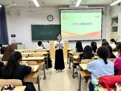 随后,班主任向同学们介绍了不同年级的大学生常见的心理健康问题,如学习、人际交往、就业、恋爱等方面的问题都是造成心理健康问题的重要因素。班主任老师指出,遇到心理困扰时及时向班主任、辅导员老师告知,可预约校内外心理咨询,了解可供选择的心理咨询资源,并介绍了调节心理问题的一些方法,例如冷静分析自我鼓励、进行心理咨询、培养良好的兴趣等。