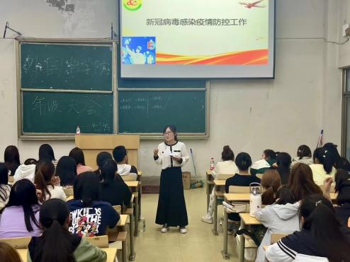 会议伊始,各级辅导员提到,新冠疫情大流行并未结束,仍在全球传播流行,当前我国疫情总体处于局部零星散发状态,并提出了三点关于“做好当前疫情防控有关工作”提醒:其一,希望全体同学加强自我健康监测,若出现发热、干咳、乏力、咽痛等症状及时上报,并开展抗原或核酸检测,做好及时治疗。如出现身体不适等,原则上不带病学习,不参加聚集性活动。其二,希望同学们在公共场所要做好个人防护,减少与他人接触。提醒同学们在日常生活中注意个人卫生,勤晾晒被褥、勤换衣、勤洗手,当好自身健康第一责任人。其三,持续推进新冠病毒疫苗接种工作,引导未感染和未完成既定免疫程序的学生根据间隔完成后续剂次疫苗接种,补齐免疫水平差距,加强自我的健康管理。