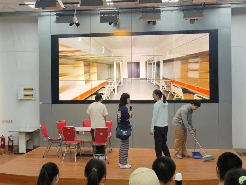 比赛过程中,选手们以角色扮演、情景再现等方式,聚焦学生实际心理问题,把自己在生活、学习以及交往中产生的冲突、开心、烦恼和困惑等,编成“小剧本”进行演出,着重探讨了大学生活中的种种心理问题。同学们通过生动的表演,辅助道具、灯光、银幕等声光电效果,营造出颇具感染力的氛围,将角色的冲突、矛盾、思考饱满的表达出来,整个过程既有情绪共鸣又引人思考。展现出了同学们扎实的学习功底和以及对心理健康问题的深入思考和关注。现场观众通过观看生动形象的舞台表演,也为选手们富有感染力的表演所深深共情,从而更加深入的了解到心理问题的具体表现形式和产生的影响。各班级在此次比赛中表现出色,深入浅出地诠释了心理问题的表现形式和应对方法,赢得了现场观众的热烈掌声。