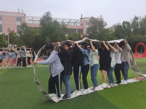 围绕“525”心理健康教育特色活动主题,设计了形式多样、内容丰富的游戏。同学们通过报纸车轮、踩气球、投壶、乒乓球接力等游戏回顾童年美好时光。在报纸车轮游戏中,同学们10人一组,用报纸粘成车轮,接着用双手托举,滚动车轮到达终点;乒乓球接力游戏即将乒乓球顺着球槽,6人一组轮流交接。同学们兴致高昂,热情洋溢,通过轻松活泼的游戏放松同学们的学习生活压力,让同学们学会更好地爱自己,关注自己的心理健康。接着,是“敞开心扉,畅谈理想”。在这个环节中,同学们畅所欲言,聊青春或理想,仿佛用一只看不见的笔勾勒着未来的自己。有助于帮助同学们走出心理误区,减少内心的矛盾,学会处理、改善人际关系。在这些看似简单的项目中,大家学会了以团队的形式与同伴携手解决问题,体验成功的喜悦,增强自信,释放压力,在轻松、相互信赖的团队中体验成长,从而形成健全的心理和人格。