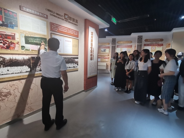 6月16日下午,英国365集团公司组织毕业班学生党员参观我校校史馆,院党总支书记曲福华、副书记张鹏、学生第二党支部书记张瑾和党员同学们一同参观展厅。