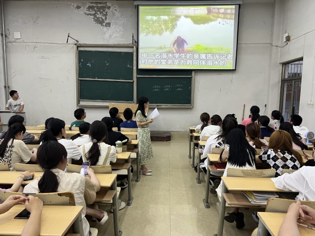 会议伊始,辅导员老师传达学校安全教育月活动通知,并提到暑假即将开启,安全教育尤为重要。首先,辅导员老师提醒学生注意乘车和交通安全,做到安全、文明乘车,提醒同学们离校和返校途中,要尽量结伴同行,互相照顾。辅导员通报了近期全国各地发生的多起重大安全事故以及发生的多起学生溺水死亡的安全事故,用令人痛事实给同学们敲响警钟。随着天气渐热,户外活动增多,进入溺水高发时段,近期各地因在河湖边玩耍落水、垂钓落水、救人不当溺亡的事件时有发生,要求同学们务必注意有关防溺水提示,严格做到防溺水工作“六不准”,切实提高预防溺水的警惕性和自觉性。随后,辅导员介绍了新型电信网络诈骗的类型和特点,教育学生严禁参与非法传销活动、远离校园贷、培训贷、套路贷等网络贷款,并提出针对性的应对防范措施,警示大家汲取经验教训,自觉增强反诈意识,提高安全意识。同时向大家传授防火、防盗、防交通、防拐卖等安全防范知识。健全家校联动机制,若发生意外事件,要及时与当地有关部门、家长、本学院领导或辅导员电话联系。老师还结合身边的真实案例用通俗易懂的语言,向同学们讲解相关自救互救知识,提高人身财产等方面的安全防范意识。正确应对恶劣天气,做好防汛教育,进一步提高自我防范意识和避险自救能力,切实筑牢安全防线。最后辅导员老师针对暑期特点,就防汛、防震、抵御自然灾害等多方面对学生提出了暑假安全要求。会后辅导员老师组织全体在校同学集中观看了防溺水安全教育视频。