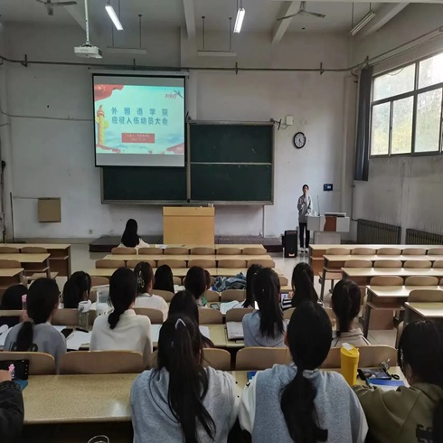 10月30日,英国365集团公司于一号教学楼开展应征入伍动员大会,此次会议邀请退役复学大学生李青媛、侯明铭主讲,2023级全体新生同学参加此次会议。