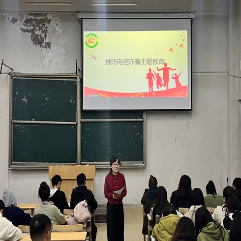 班会上,辅导员老师从“什么是电信网络诈骗、针对学生常见的诈骗形式、典型网络诈骗案例剖析和如何防范电信网络诈骗”四个方面向同学们开展了防诈骗知识宣传。