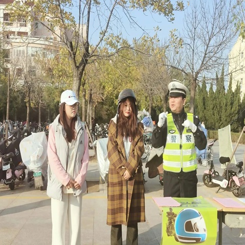 活动伊始,派出所民警首先提到交通安全对于我们日常生活的重要性,并且借日常生活中忽视交通安全而造成交通事故的例子,向我们强调:“道路千万条,安全第一条”。随后,派出所民警围绕“知危险、会避险”“一盔一带”等内容,向在场同学讲解了日常出行的安全注意事项,阐释严重交通违法的惨重后果。并且指出在道路上正确佩戴安全帽的重要性。为此,派出所民警邀请两位同学来到前面,通过两位同学戴安全帽的方式,向同学们展示正确戴安全帽的方法。最后,派出所民警采用边讲边提问的方式向同学们重点讲解交通安全知识,引导学生们养成文明出行的良好行为习惯。与此同时,派出所民警向在场同学分发交通安全明白纸,协助同学们可以更好地认识和了解交通安全相关知识。