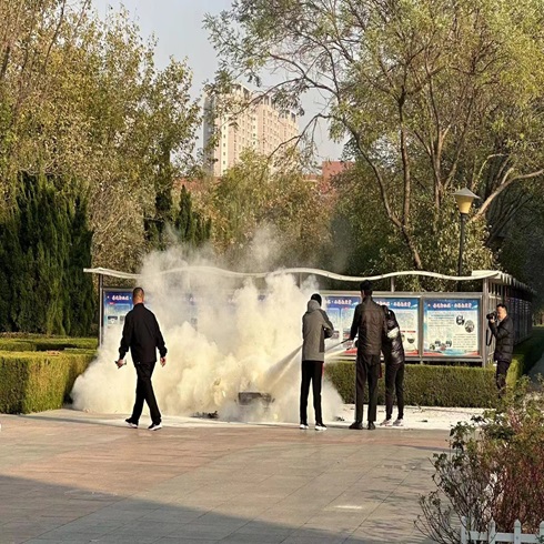本次演练主要对正确使用灭火器进行快速灭火、扑灭初期火灾、火灾的现场报警、人员疏散与逃生自救、消防队员灭火救援等内容进行了现场演示。演练伊始,现场响起火灾警报声,消防员们相互配合,引导师生们紧急疏散、自救和逃生,并用消防器材进行灭火,逐渐控制火势的蔓延。随后,模拟演练了突发煤气泄漏的紧急情况,消防员们用专业的方式将气体进行清理,并成功营救了被困学生。任务完成,现场响起阵阵掌声。
