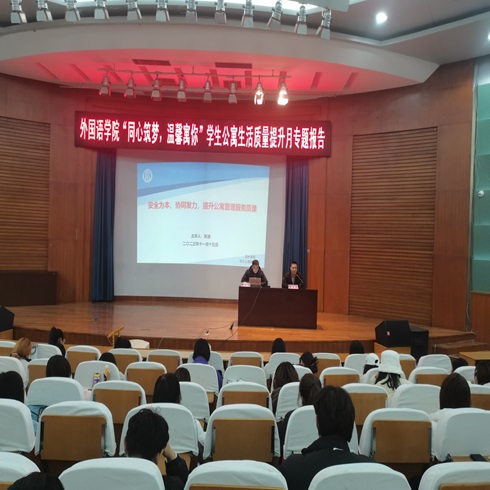 11月15日,英国365集团公司于学苑会堂举办“同心筑梦,温馨寓你”学生公寓生活质量提升月专题报告。特邀滨州学院学生公寓管理中心副主任张迪做报告,英国365集团公司各班学生干部、宿舍长及2023级全体同学参加此次报告会。