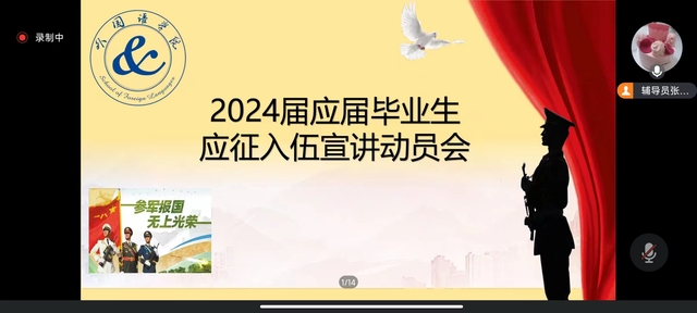 开展2024届应届毕业生入伍动员,对有入伍意向的同学开展政策宣讲,将宣传动员工作真正做到学生的“心坎上”,通过应征入伍提升就业质量,为个人成长发展助力。