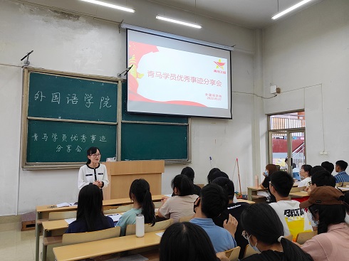 会议邀请了我院几位优秀青马代表同学作交流分享。她们在本次分享会中讲述了自己在校三年里对于学生干部工作的心得体会以及独特的经历。20英语本2班法雪同学主要从三个方面进行学习经验宣讲:调整良好的心态,树立正确的奋斗目标;培养兴趣爱好,善于发现生活;学会管理时间,做自己的主人,同学们受益匪浅。20商务本1班黄楚仪同学讲述了自己入学3年以来的学习、工作、兴趣、生活的经历,分享如何平衡工作与学习的经验,并鼓励大家积极参与各项校园活动,不断丰富自己的大学生活。20商务本1班孔赟同学以“砥砺青春,与梦同行”为题,从学习、工作、自我价值三个方面进行宣讲,她希望同学们为了目标去努力,去拼搏,我们的青春,是因为有梦想才变得与众不同!20英语本1班刘姝妍同学以“青春之花芬芳支教路”为主题,分享其援疆支教经历与感悟,号召同学们发扬新时代青年无私的志愿精神,鼓励同学们用奋斗续写时代华章,不断增强志气、骨气、底气,让青春足迹在不懈奋斗中绽放绚丽之花。20英语本2班王小琛同学通过讲解自身经历,鼓励同学们要培养良好的习惯,在学习上,勇于尝试参加各类比赛等;在工作中,劳逸结合,合理安排时间;在生活中,多参加社会实践活动,为社会贡献自己的一份力量。