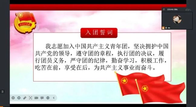 第六项,全体起立,重温入团誓词。团员青年不忘初心、牢记使命,一起重温入团誓词,表达自己积极进取、勇于担当、攻坚克难的信心。