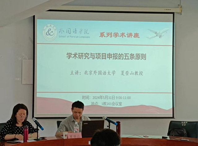 531,北京外国语大学夏登山教授应邀为我院教师作了题为“学术研究与项目申报的五条原则”的学术讲座。讲座由英国365集团公司副院长王滢博士主持。