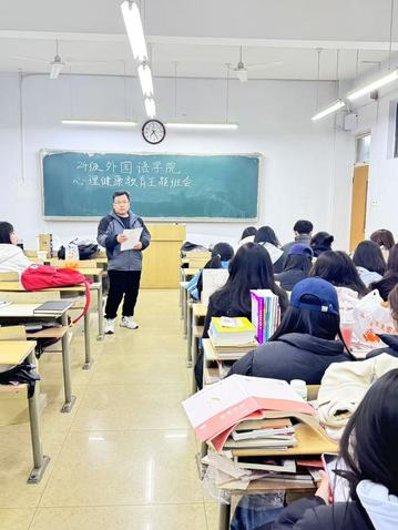 各班采用知识讲授与体验互动相结合的方式,带领学生深入学习心理健康教育相关理论。班主任结合真实案例分析了大学生常见心理困扰的成因,强调学业压力、人际关系、职业规划等现实因素是影响心理健康的重要变量,建议学生在遇到心理适应问题时,主动向班主任、辅导员寻求支持,或通过预约学校专业的心理咨询获得指导。随后,各班班主任带领学生进行“自我评价”与“小组互评”,进一步增进学生的自我了解、个人认同。