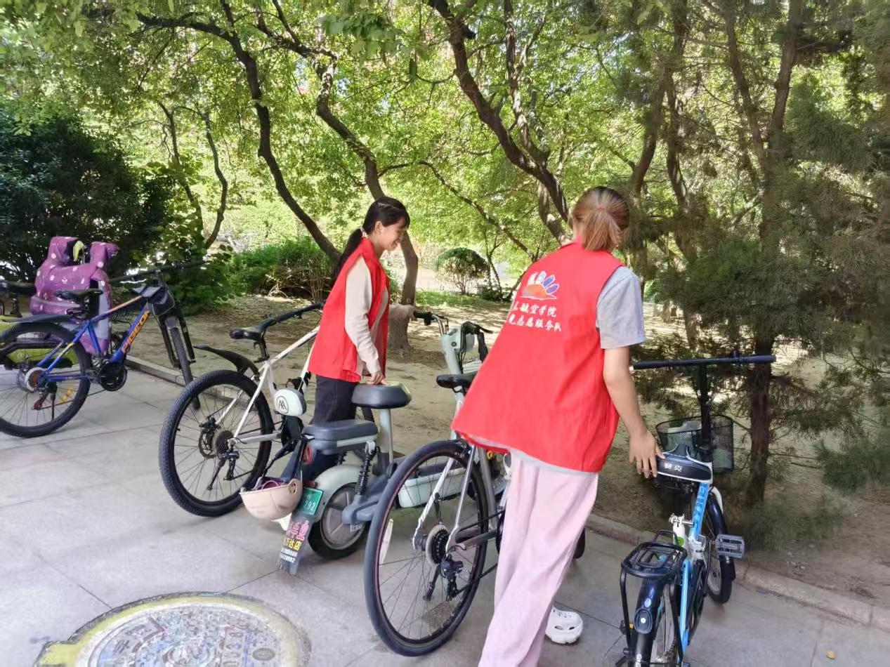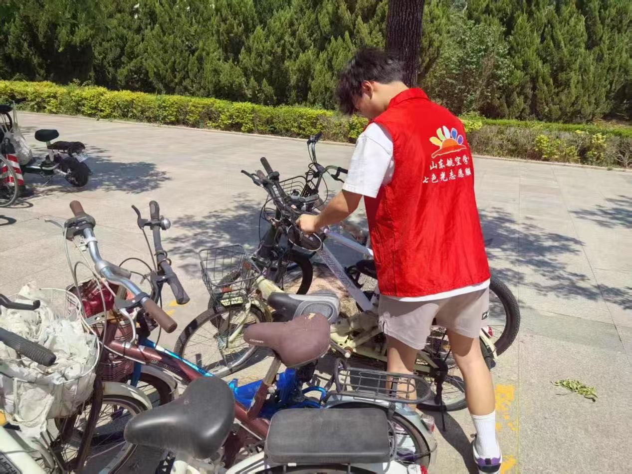 活动当天,志愿者们提前到达指定区域,在明确分工后迅速投入工作。面对散乱停放的自行车和电动车,志愿者们不辞辛劳,协力将车辆逐一抬起、摆正,细致调整车头朝向,确保每排车辆都整齐划一。在整理过程中,志愿者们还主动向过往同学宣传文明停车规范,倡导大家共同维护校园秩序。尽管天气炎热,志愿者们仍以饱满的工作热情坚守岗位。经过志愿者的辛勤努力,原本杂乱的停车区域变得井然有序,车辆停放秩序得到显著改善。