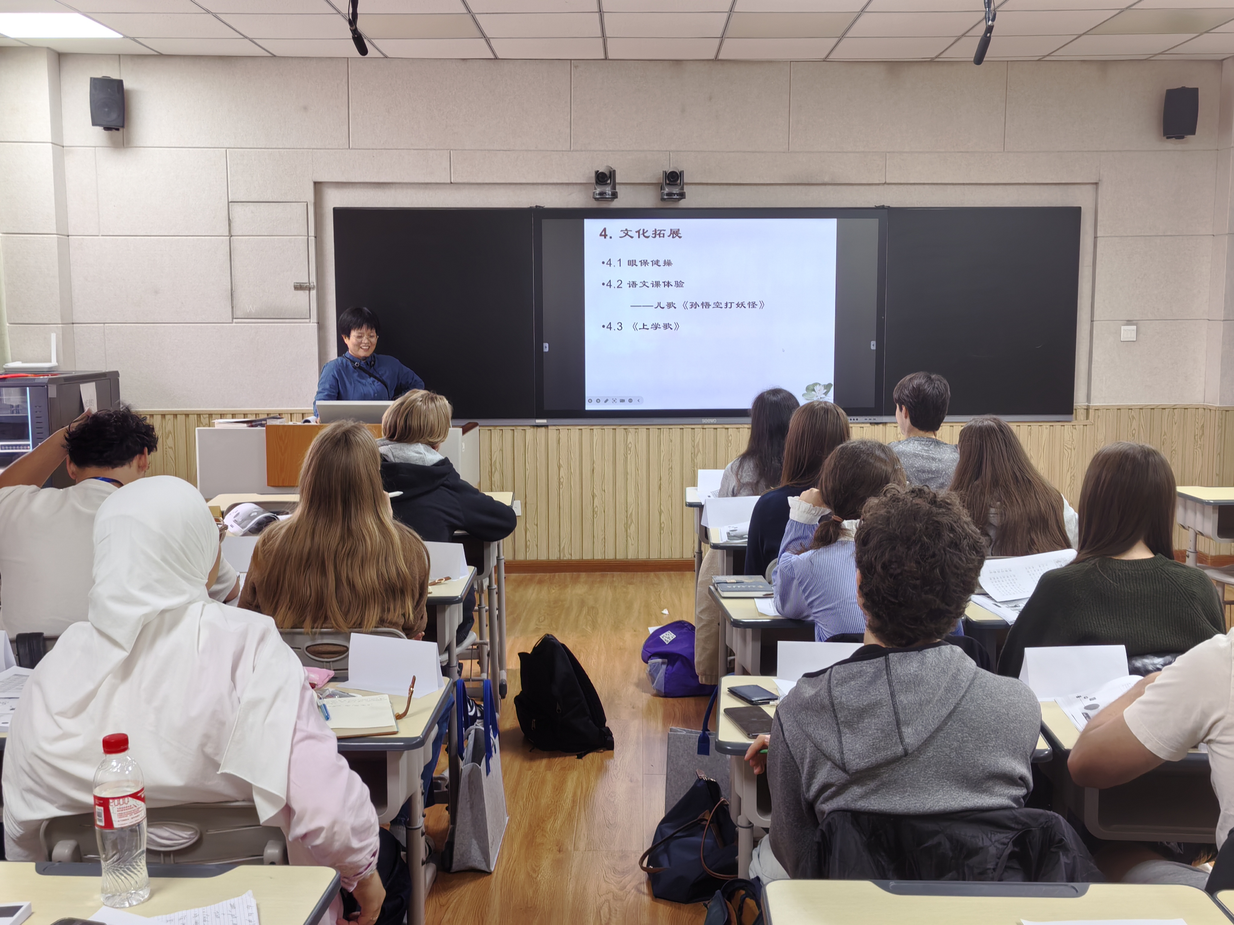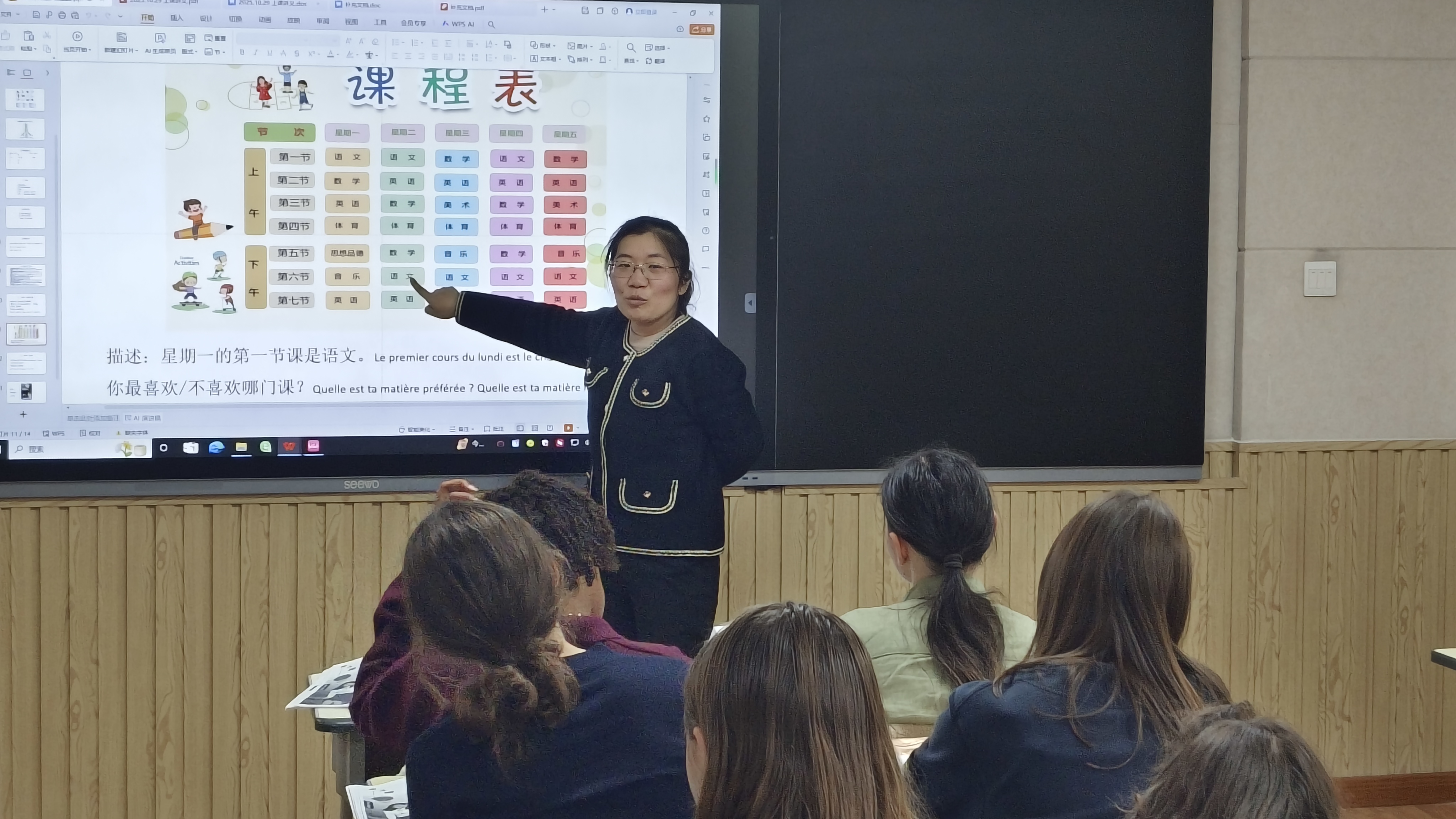 李老师以课堂常用话语作为教学内容,通过互动练习,让学生掌握了相关词汇和句式。在文化拓展部分,向法国学生介绍了《西游记》的故事。