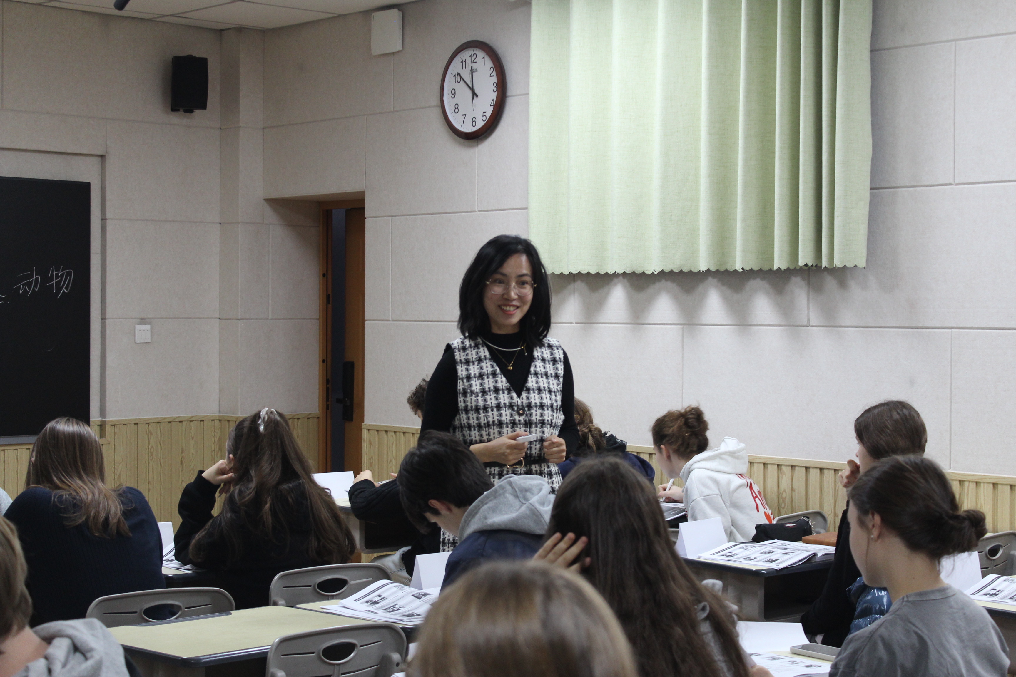 乔老师借助丰富的教具,引导学生们掌握汉语量词的使用规则。课堂内容深入浅出,课堂氛围活跃。