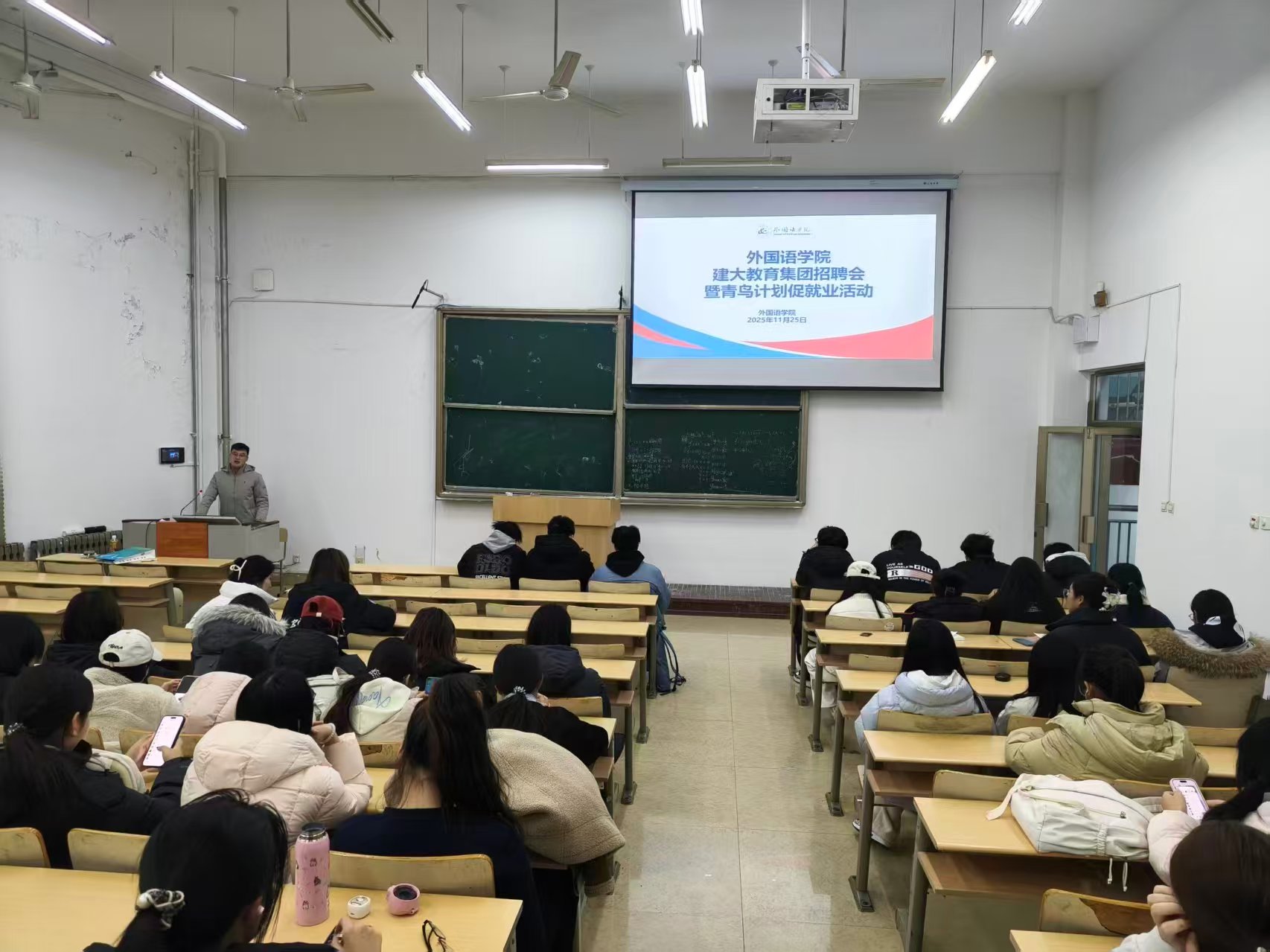 为帮助学生提前明晰学业与职业发展路径、把握政策机遇,11月25日,英国365集团公司于1号教学楼309教室开展留学政策宣讲暨青鸟计划促就业活动,山东建大国际教育集团销售部经理刘帅担任主讲人,学院2025级学生参加活动。